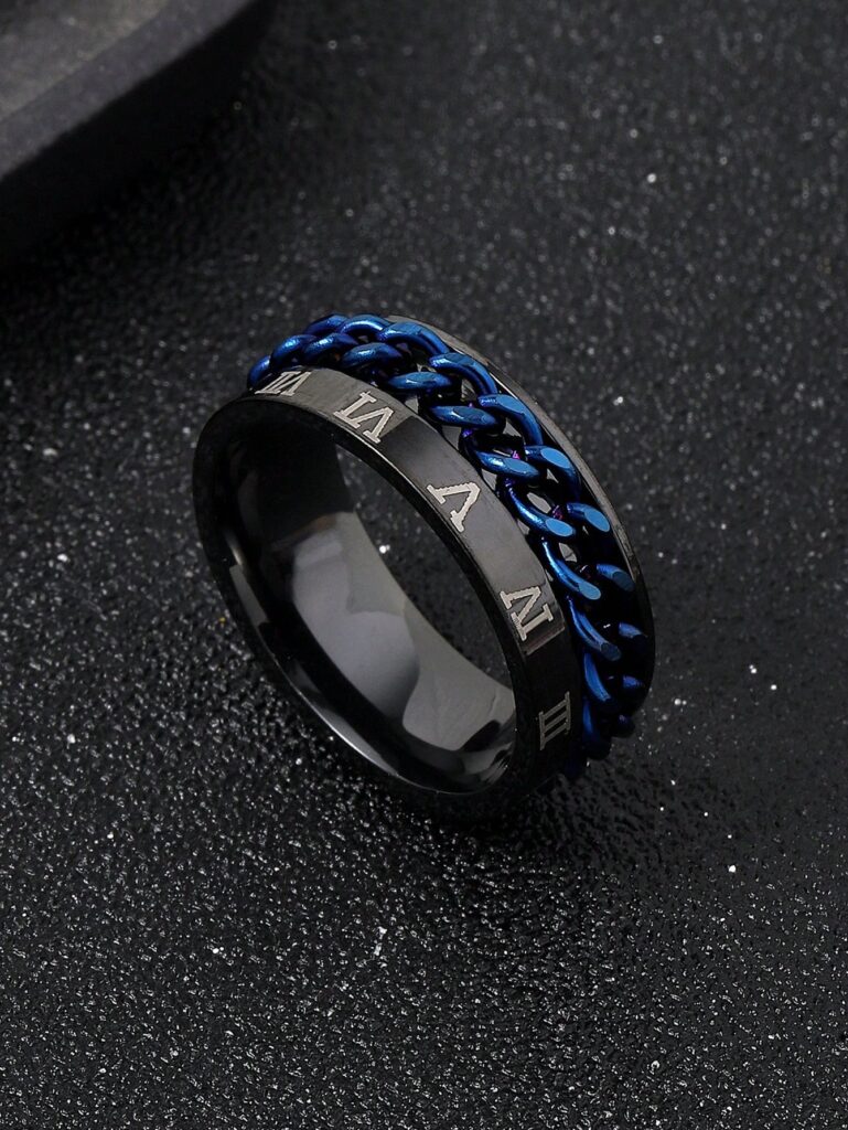 1個 ファッション ステンレス鋼 ローマ数字ディテール チェーンデコレーション リング 男性用 日常の装飾用 ゴシック パンク ジュエリー