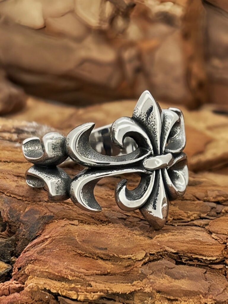 1個 パンクスタイル ステンレス製 クロス&フラワーリング ユニセックスサイズ